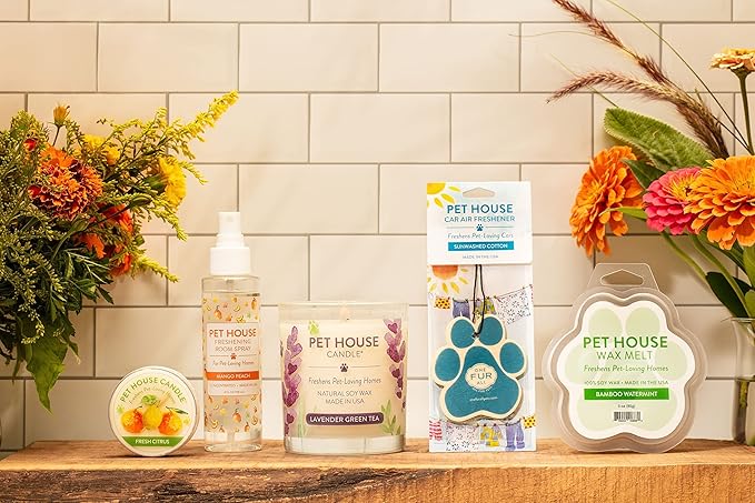 • Plant Based Soy Wax Candle: Pet house candles are made with 100% plant-based wax. Our pet candles are paraffin and dye free. These scented soy candles burn clean with a cotton wick.