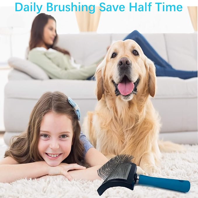 • 【Comfortable Grooming】 The air-cushioned pad with nearly 100% more pins provides a comfortable, massage-like experience while brushing, without digging into or agitating the skin - your pet will love this brush - The large slicker brush easily grooms your dog while creating a positive experience for them