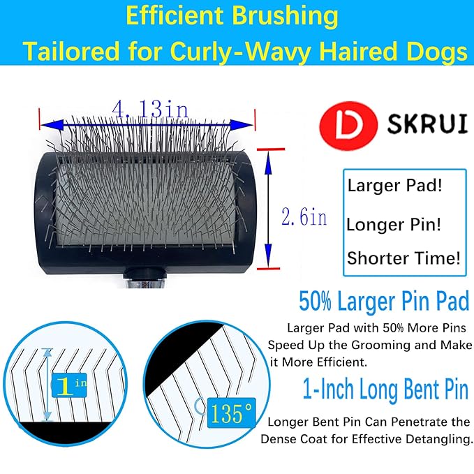 Extra Long Pin Slicker Brush for Dogs - Great for Grooming Doodle, Poodle, Husky, Goldendoodle,Alaska, Bernedoodle, Labradoodle - Best for Medium to Long Haired Dogs