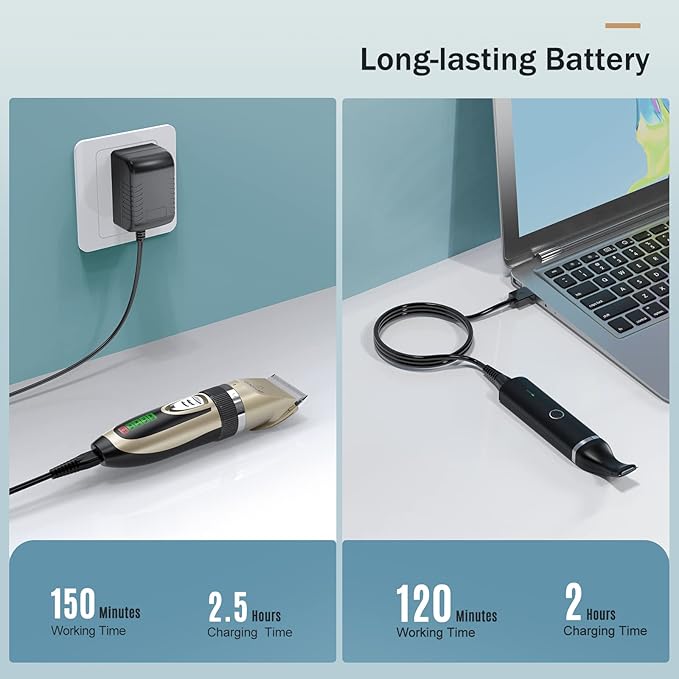• Cordless Design, Easy to Use: You could use our dog clippers with a cordless status as well as used when charging. With the cordless clipper, you will never be bothered by the trouble of replacing batteries or boring wires anymore. Quite easy to use even for Green hand