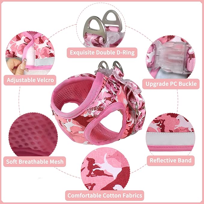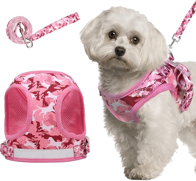 Step in Dog Harness and Leash Set, Reflective Adjustable Dog Vest Harness No Pull Puppy Harnesses for Small Dogs and Cats (S, Pink)