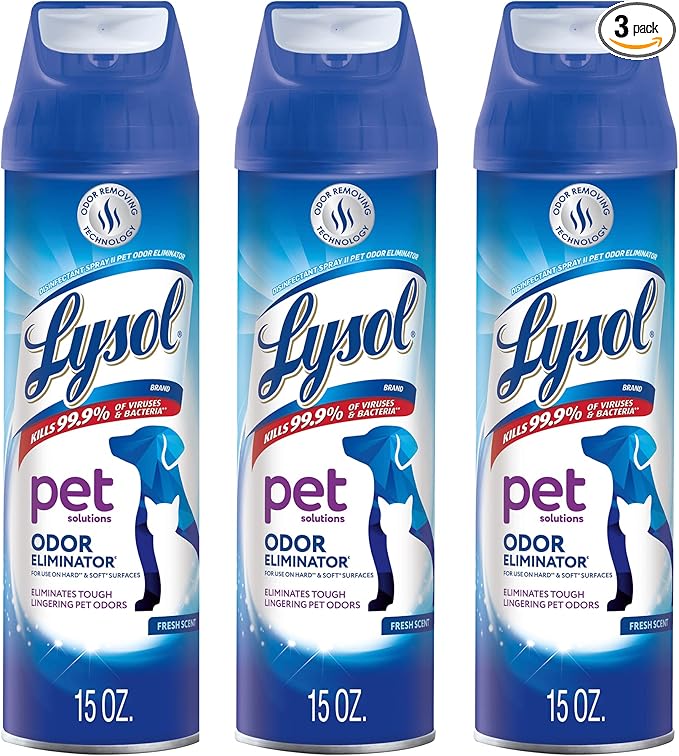 Lysol Pet Odor Eliminator Spray, Sanitizing and Disinfecting Spray for Pet Odors, 15oz (Pack of 3)