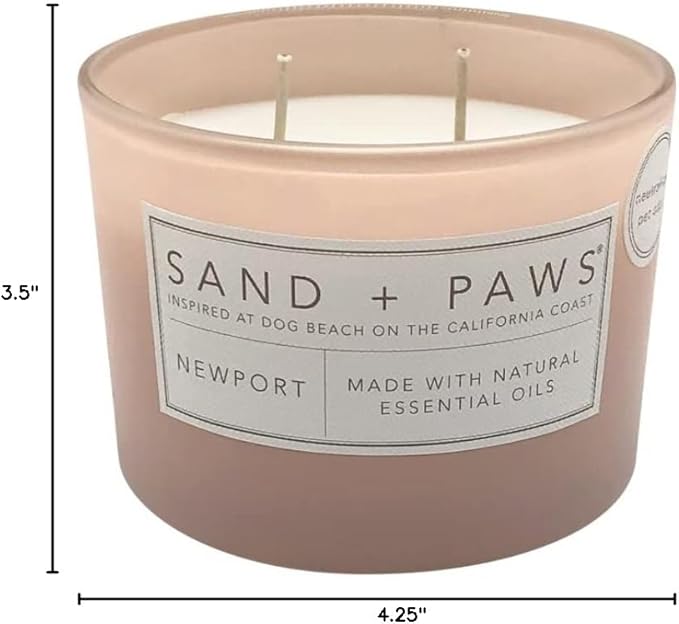 Sand + Paws Scented Candle - Newport - Additional Scents and Sizes –Luxurious Air Freshening Jar Candles Neutralize pet Odors and Enhance Home décor – 100% Cotton Lead-Free Wicks - 12 oz