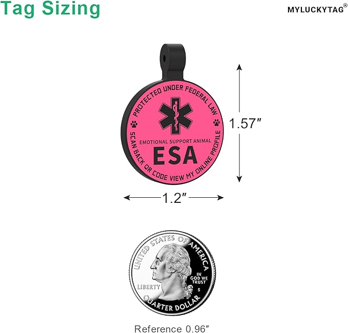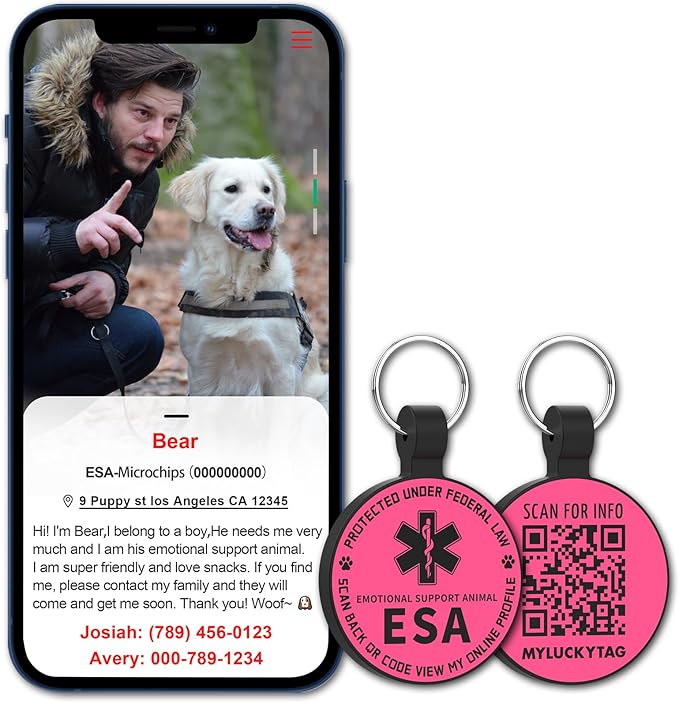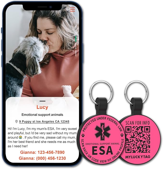 MYLUCKYTAG QR Code ESA Emotional Support Dog ID Tag - Pet Online Profile - Scan QR Receive Instant Pet Location Alert Email