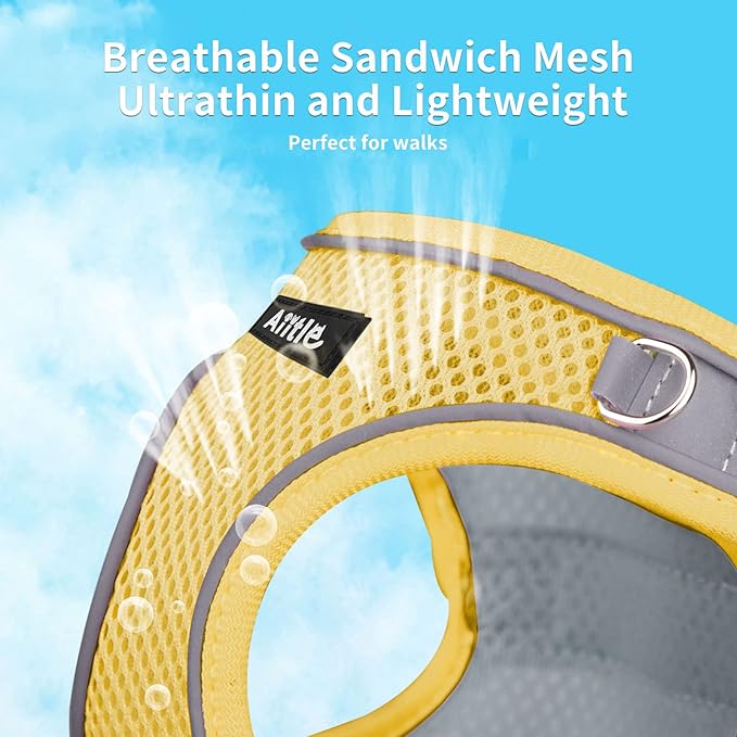 AIITLE Small Harness for Puppy with A Leash - Spring Dog Vest Harness with Super Breathable Mesh, Reflective No-Pull Pet Harness for Outdoor Walking, Camping for Small Dogs, Cats Yellow XXS
