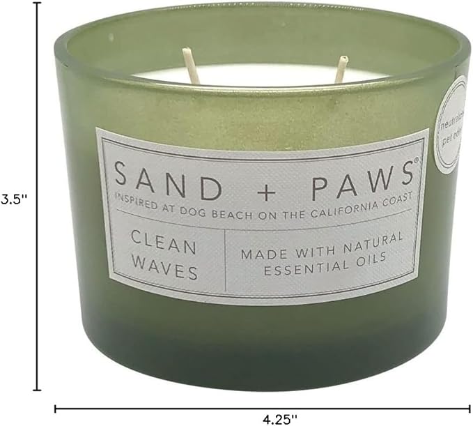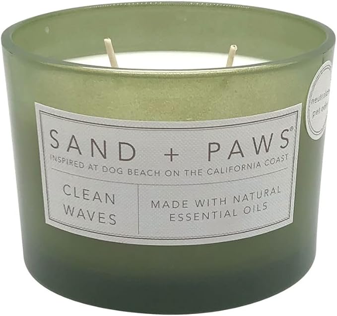 Sand + Paws Scented Candle - Clean Waves - Additional Scents and Sizes –Luxurious Air Freshening Jar Candles Neutralize pet Odors and Enhance Home décor – 100% Cotton Lead-Free Wicks - 12 oz