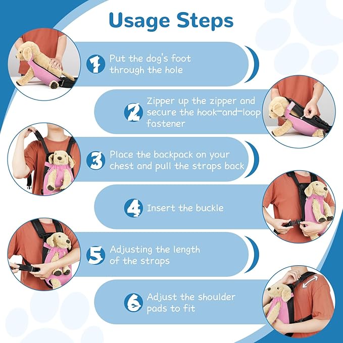 • 3 Sizes Available for Your Beloved Pet: The suggested weight for the dog front backpack is for reference only. If your dog's body length requires size S but the girth requires size M, please choose size M. Additionally, leave at least an extra inch to ensure your pet's comfort.