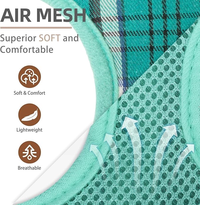 • DIFFERENT DESIGN: The harness is adopted with a plaid pattern which is designed by our internal brand team, so it's unique and very different from other normal harnesses. This plaid pattern looks both classic and stylish and is never out of date. It's great for everyday walking or going to a holiday party. It makes your furry friend look so lively and cute