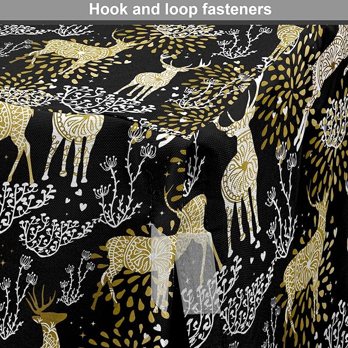 Ambesonne Christmas Dog Crate Cover, Nature Woodland and Deer Silhouettes with Oriental Ornaments Design, Easy to Use Pet Kennel Cover for Small Dogs Puppies Kittens, 22 Inch, Yellow White Black