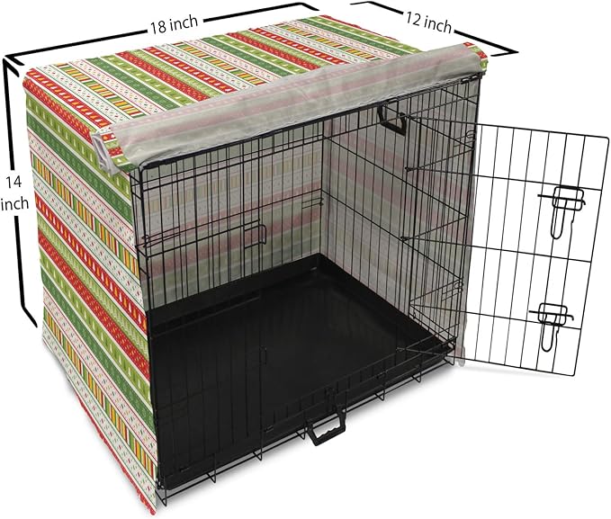 Ambesonne Christmas Dog Crate Cover, Traditional Winter Seasonal Borders Stars Bells Trees Stripes Print, Easy to Use Pet Kennel Cover for Small Dogs Puppies Kittens, 18 Inch, Lime Green