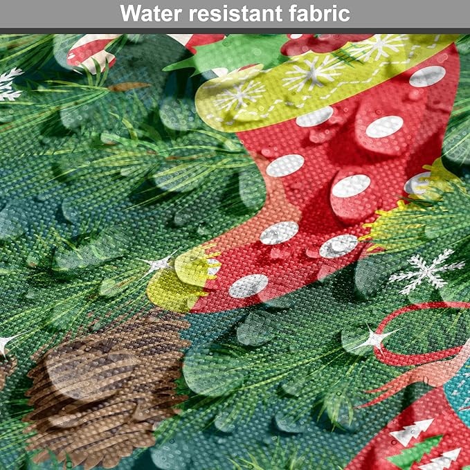 Ambesonne Christmas Dog Crate Cover, Xmas Accessories Stockings Candies Horse Teddy Bear on Pine, Easy to Use Pet Kennel Cover for Small Dogs Puppies Kittens, 22 Inch, Green Brown