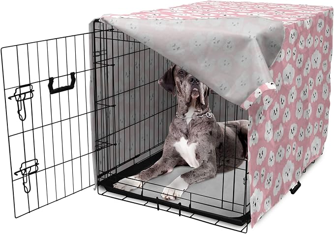Ambesonne Cloud Dog Crate Cover, Continuous Fluffy Cumulus Blush Tones Sky Cartoon, Easy to Use Pet Kennel Cover for Medium Large Dogs, 48 Inch, Pink Charcoal