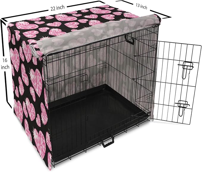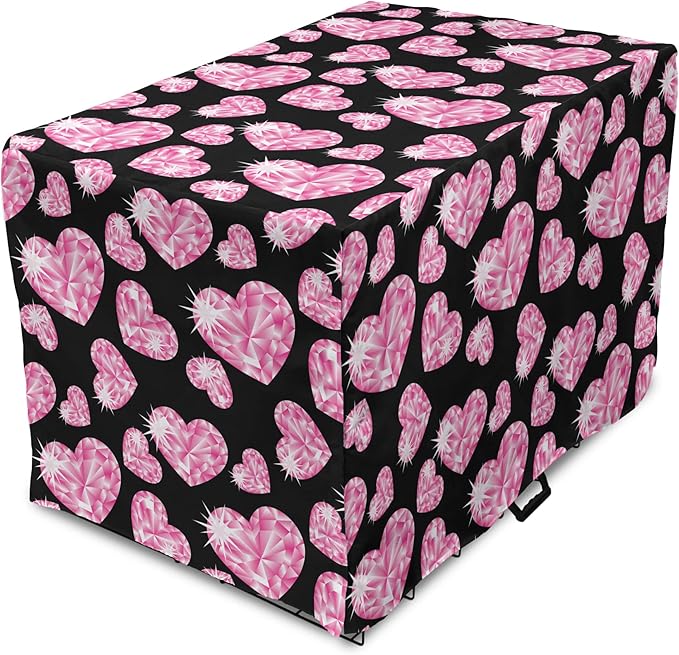 Ambesonne Diamonds Dog Crate Cover, Romantic Pink Heart Stones on Black Background Valentines Day Theme, Easy to Use Pet Kennel Cover for Small Dogs Puppies Kittens, 22 Inch, Pink Black