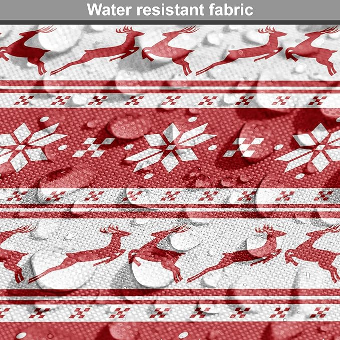 Ambesonne Christmas Dog Crate Cover, Xmas Winter Themed Deers Snowflakes in Nordic Pattern Borders and Lines Art, Easy to Use Pet Kennel Cover for Cats & Medium Dogs, 24 Inch, Ruby White