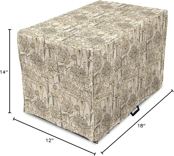Lunarable Floral Dog Crate Cover, Daffodil and Carnation Bouquets Sketch Art Style Botanical Blossoms Field, Easy to Use Pet Kennel Cover for Small Dogs Puppies Kittens, 18 Inch, Beige and Champagne