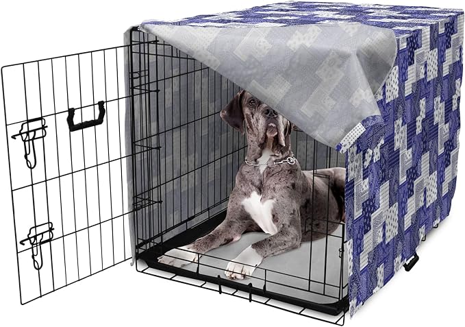 Lunarable Geometric Dog Crate Cover, Eastern Inspirations Canonical Paisley and Floral Composition Squares, Easy to Use Pet Kennel Cover for Medium Large Dogs, 48 Inch, Dark Blue Cobalt Blue