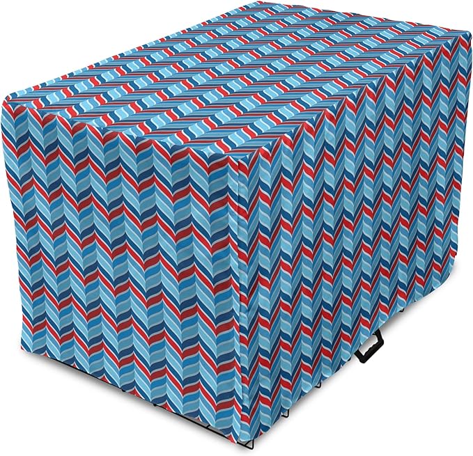 Lunarable Chevron Dog Crate Cover, Abstract Dimension Effects Featured Wavy Zigzag Leaf Curve Contrast Image, Easy to Use Pet Kennel Cover for Cats & Medium Dogs, 30 Inch, Violet Blue Red Aqua
