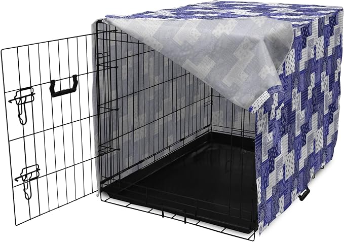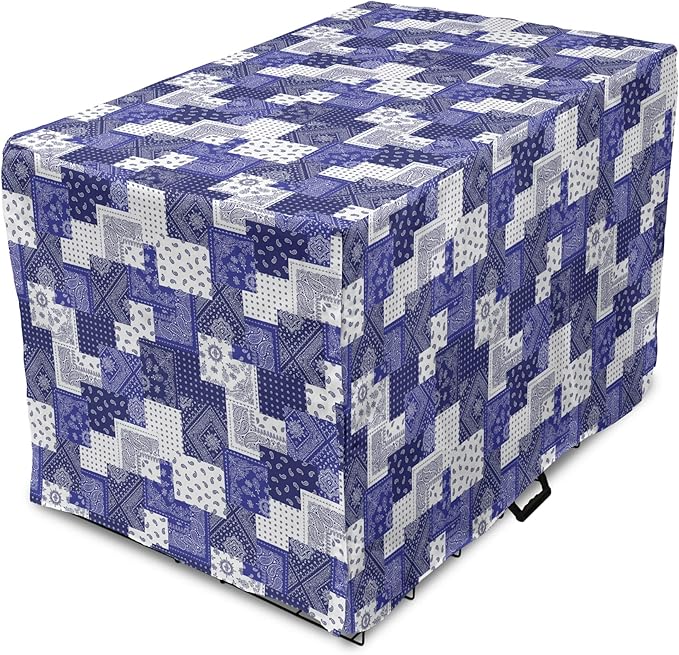 Lunarable Geometric Dog Crate Cover, Eastern Inspirations Canonical Paisley and Floral Composition Squares, Easy to Use Pet Kennel Cover for Cats & Medium Dogs, 30 Inch, Dark Blue Cobalt Blue