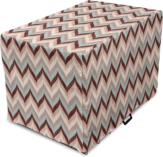 Lunarable Chevron Dog Crate Cover, Ikat Zig Zags Wavy Nostalgic Vintage Design, Easy to Use Pet Kennel Cover for Medium Large Dogs, 42 Inch, Dried Rose Pale Blue