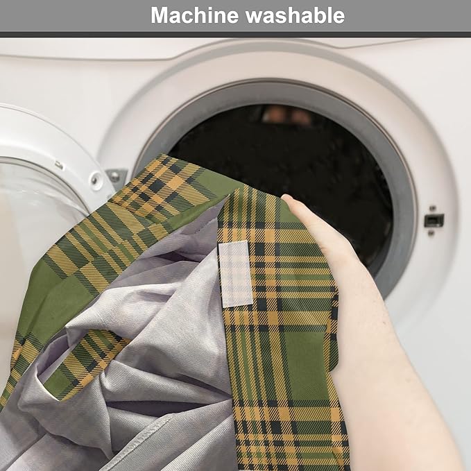 Lunarable Plaid Dog Crate Cover, Tartan Pattern in Autumn Tones Old Fashioned Design Country Illustration, Easy to Use Pet Kennel Cover for Cats & Medium Dogs, 30 Inch, Olive Green Mustard