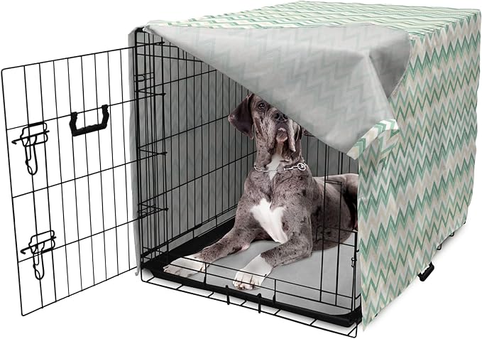 Lunarable Chevron Dog Crate Cover, Ikat Style Ornate Simplistic Zigzag Traditional Herringbone, Easy to Use Pet Kennel Cover for Medium Large Dogs, 48 Inch, Ivory Seafoam Jade Green