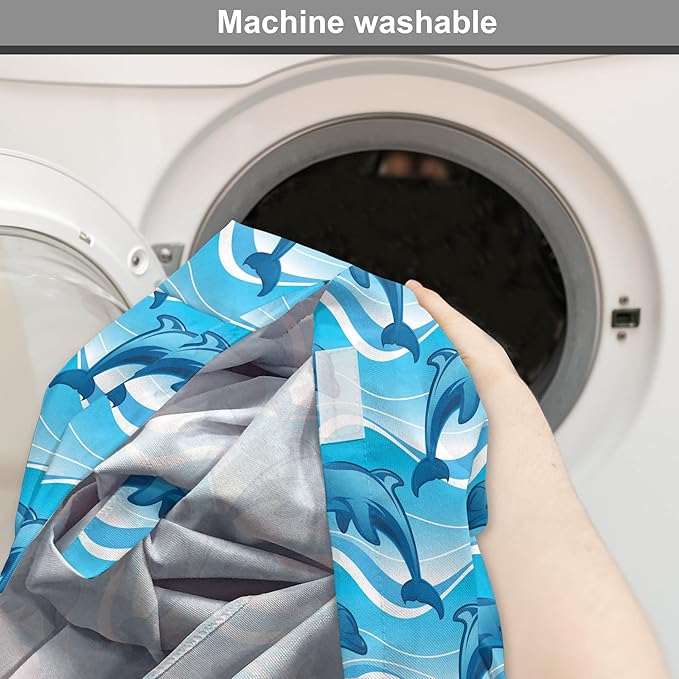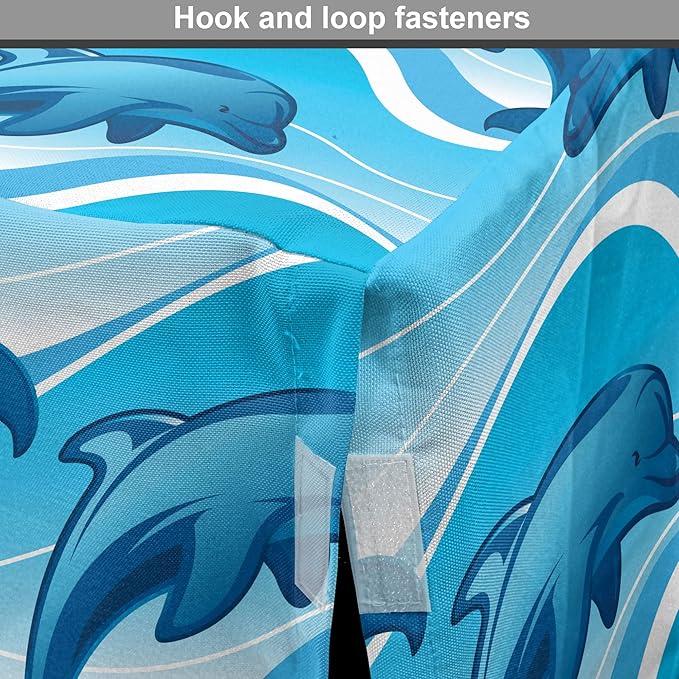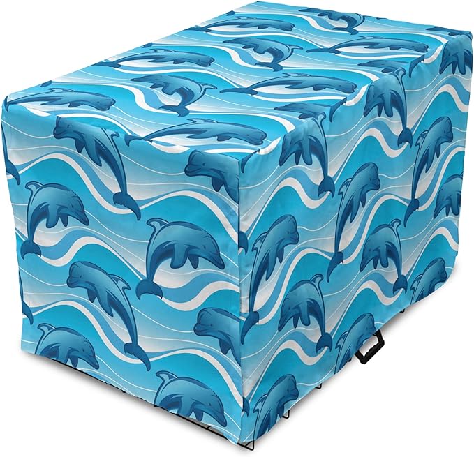 Lunarable Dolphin Dog Crate Cover, Dolphin Illustration Jumping Waves with Large Mammal Friendly Ocean Animal, Easy to Use Pet Kennel Cover for Medium Large Dogs, 48 Inch, Azure Blue White
