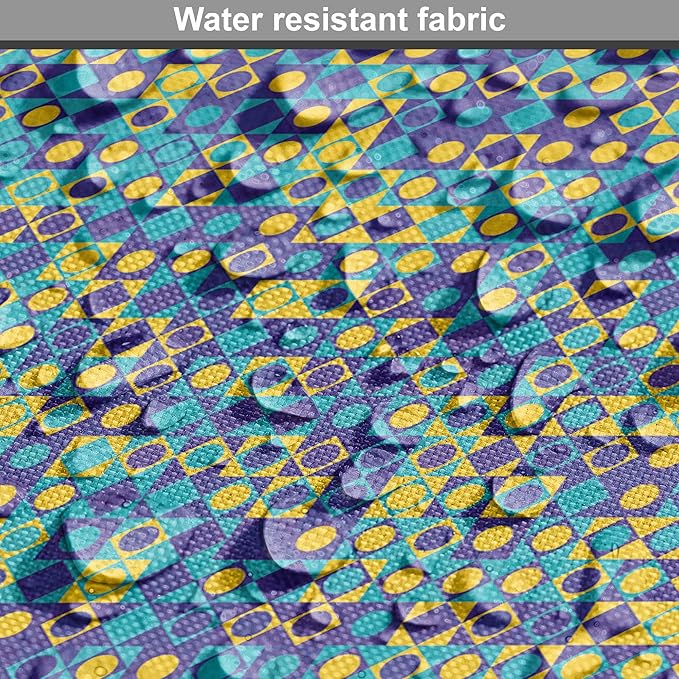 Lunarable Yellow and Blue Dog Crate Cover, Circles Squares and Triangles Mosaic Pattern with Dots Vibrant, Easy to Use Pet Kennel Cover for Small Dogs Puppies Kittens, 22 Inch, Purple Sky Blue Yellow
