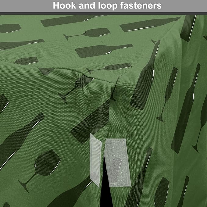 Lunarable Drinks Dog Crate Cover, Monotone Style Shapes of Wine Bottles and Glasses Diagonally Arranged, Easy to Use Pet Kennel Cover for Cats & Medium Dogs, 24 Inch, Reseda Green Olive Green