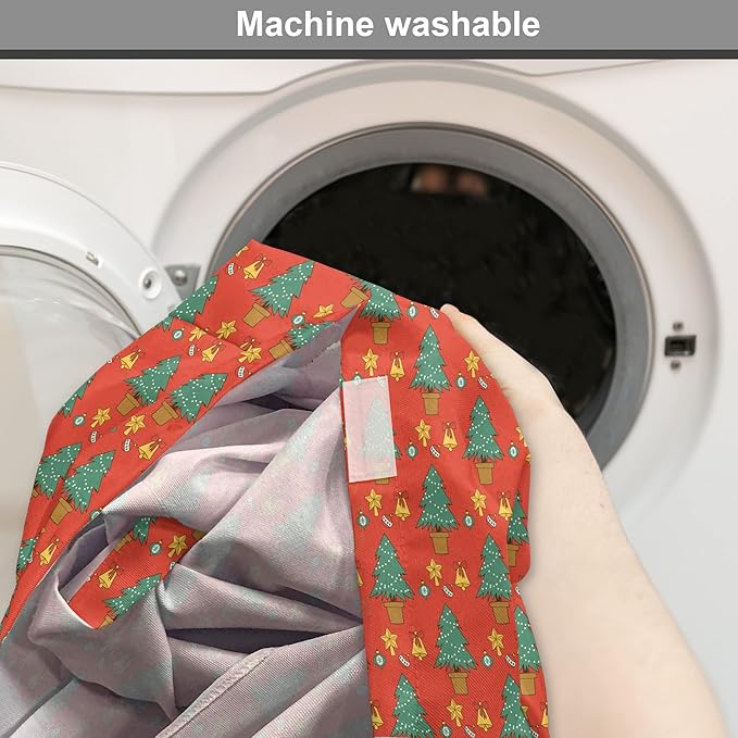 Lunarable Christmas Dog Crate Cover, Baubles Jingle Bells Pine Trees Motifs Colorful Composition Print, Easy to Use Pet Kennel Cover for Cats & Medium Dogs, 24 Inch, Vermilion Multicolor