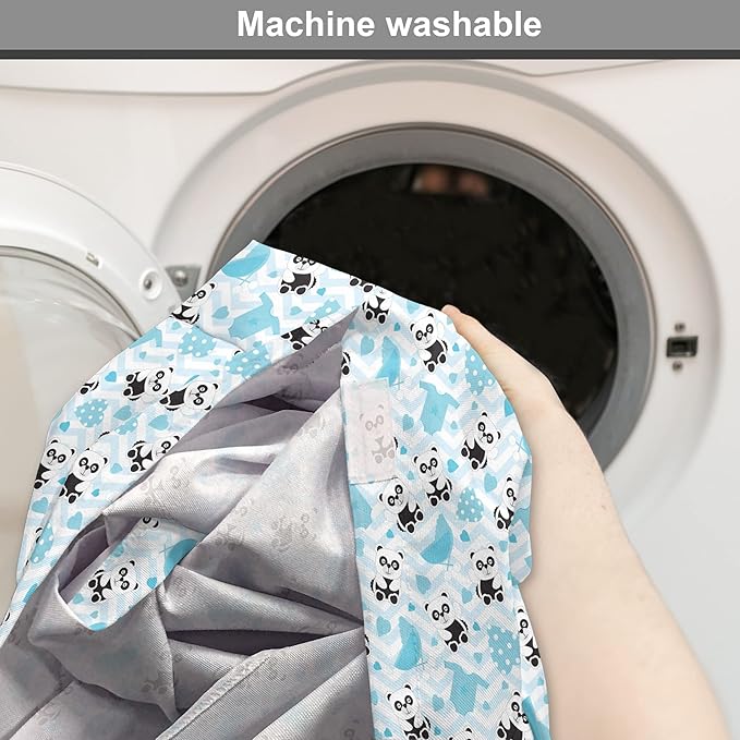 Lunarable Panda Dog Crate Cover, Chinese Bears with Stroller and Dotted Hearts on Chevron Background, Easy to Use Pet Kennel Cover for Cats & Medium Dogs, 24 Inch, Pale Blue Black Blue