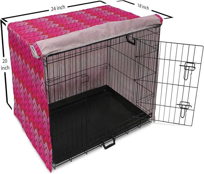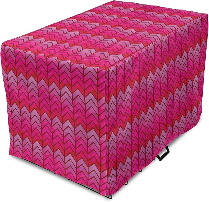Lunarable Chevron Dog Crate Cover, Surreal Chevron Pattern Geometric Vibrant Colored Ornamental Illustration, Easy to Use Pet Kennel Cover for Cats & Medium Dogs, 24 Inch, Magenta Red Violet