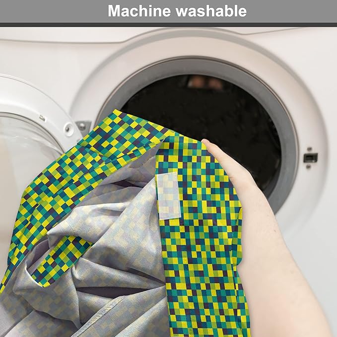 Lunarable Yellow and Blue Dog Crate Cover, Vivid Colored Squares Funky Simple Retro Style Grid Tile, Easy to Use Pet Kennel Cover for Cats & Medium Dogs, 30 Inch, Petrol Blue Lime Green