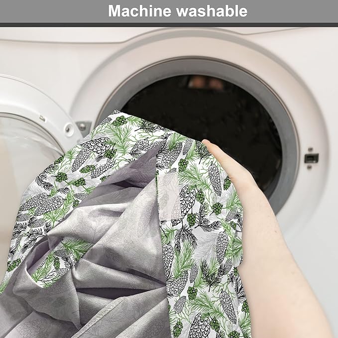 Lunarable Green Xmas Dog Crate Cover, Pine Cones and Holiday Theme Plants Fir Tree Motifs Print, Easy to Use Pet Kennel Cover for Small Dogs Puppies Kittens, 18 Inch, White Fern Green