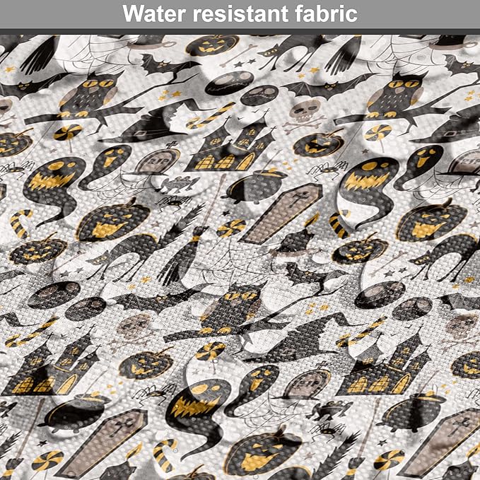 Lunarable Vintage Halloween Dog Crate Cover, Halloween Cartoon Jack o' Lantern Tombstone Skulls and Bones, Easy to Use Pet Kennel Cover for Cats & Medium Dogs, 30 Inch, Pale Grey