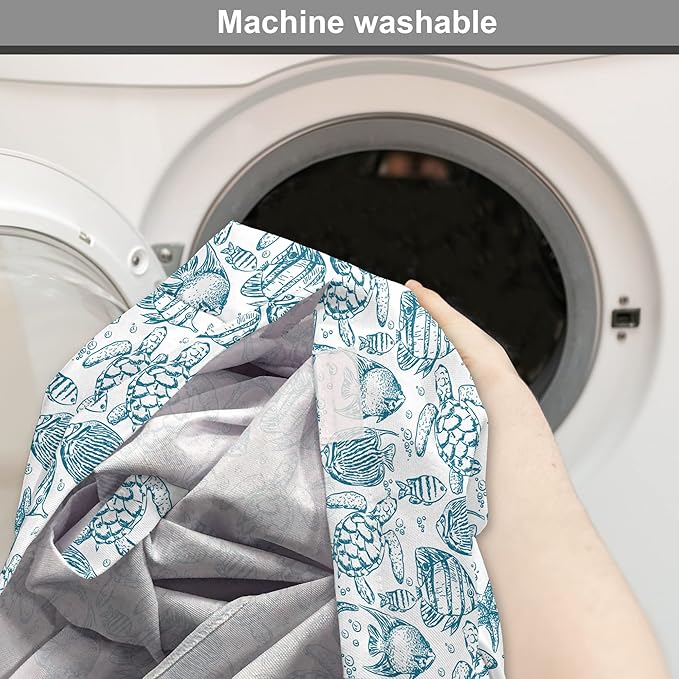Lunarable Under The Sea Dog Crate Cover, Hand Drawn Sketch Art Style Fauna of The Sea Turtle Starfish and Fishes, Easy to Use Pet Kennel Cover for Small Dogs Puppies Kittens, 22 Inch, Blue White