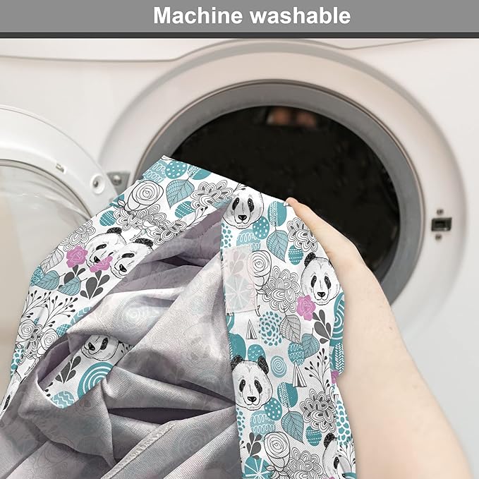 Lunarable Panda Dog Crate Cover, Portraits of Chinese Bears on Sketch Flowers and Abstract Circular Shapes, Easy to Use Pet Kennel Cover for Medium Large Dogs, 42 Inch, Slate Blue Pink Grey