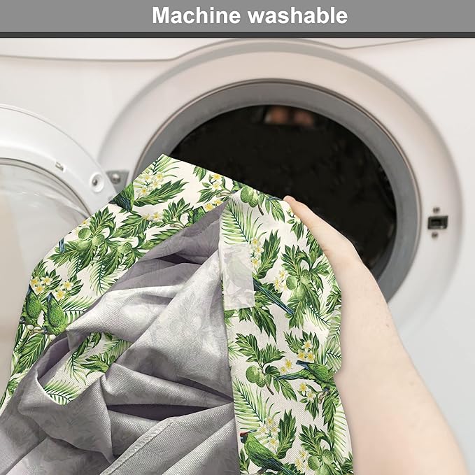 Lunarable Green Dog Crate Cover, Exotic Tropic Pattern with Palm Leaves Breadfruits Plumeria Flowers and Parrots, Easy to Use Pet Kennel Cover for Small Dogs Puppies Kittens, 18 Inch, Lime Green Cream