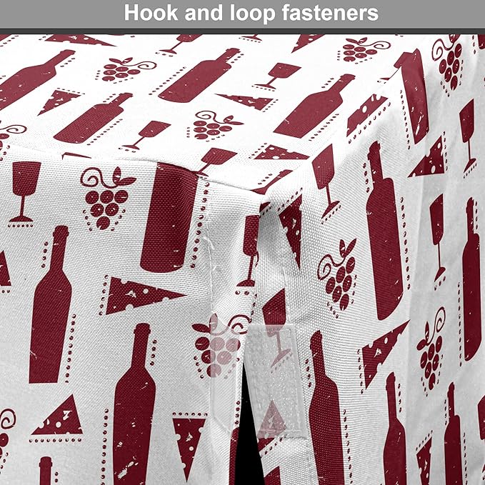 Lunarable Drinks Dog Crate Cover, Illustration of Grunge Style Wine Bottles Glasses Cheese and Grapes Vintage, Easy to Use Pet Kennel Cover for Medium Large Dogs, 42 Inch, Maroon and White