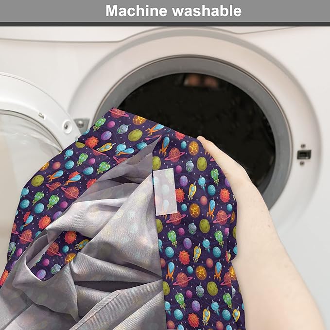 Lunarable Outer Space Dog Crate Cover, Cartoon Planets and Ships With Background, Fun Science, Easy to Use Pet Kennel Cover for Cats & Medium Dogs, 30 Inch, Dark Blue