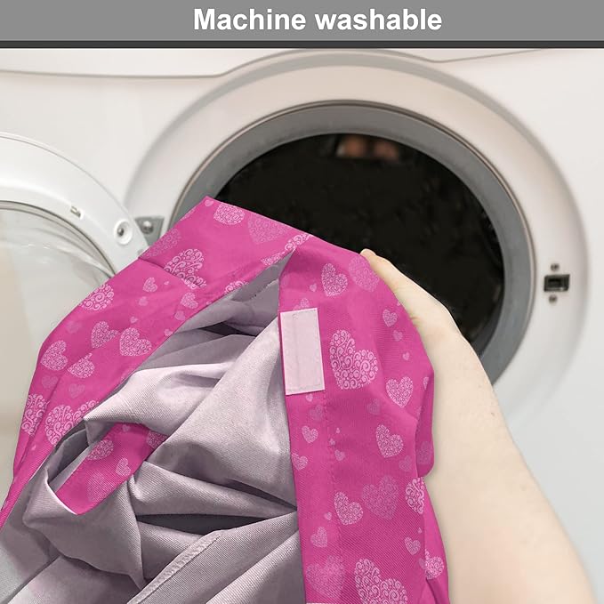 Lunarable Love Dog Crate Cover, Romantic Theme Abstract Heart Shapes Valentines Day 14th February Design, Easy to Use Pet Kennel Cover for Medium Large Dogs, 42 Inch, Hot Pink