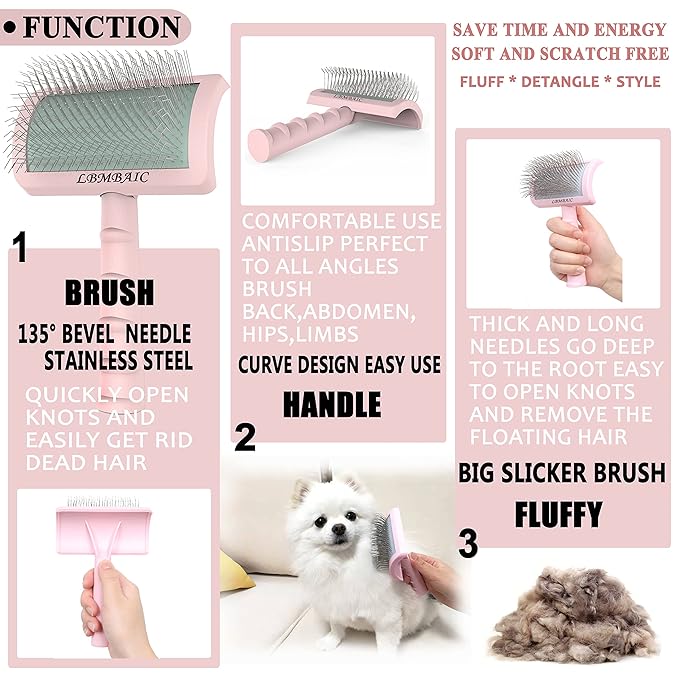 • 【Easier For Groomer To Untie The Tangle Spend Less Time Combing.】- Our Slicker brush is good to get in touch with the root of your pet's hair.Remove underlayer fluff to prevent tangles.The dog slicker brush has soft needle,buffer force,make brush have resilience,effectively avoid injury to the skin.Light weight save the time and energy of grooming and brushing.Great use for Fluff,detangle and style with one tool.Also good use for daily gently brush away loose hair,undercoat,mats,and tangles.