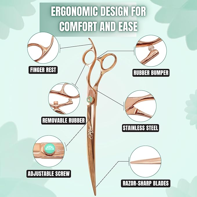 Kenchii Rose Dog Grooming Scissors, 9 Inch Curved Shears, Dog Scissors for Grooming, Ergonomic Design for Comfort and Precision, Heavy Duty, Durable and Sharp