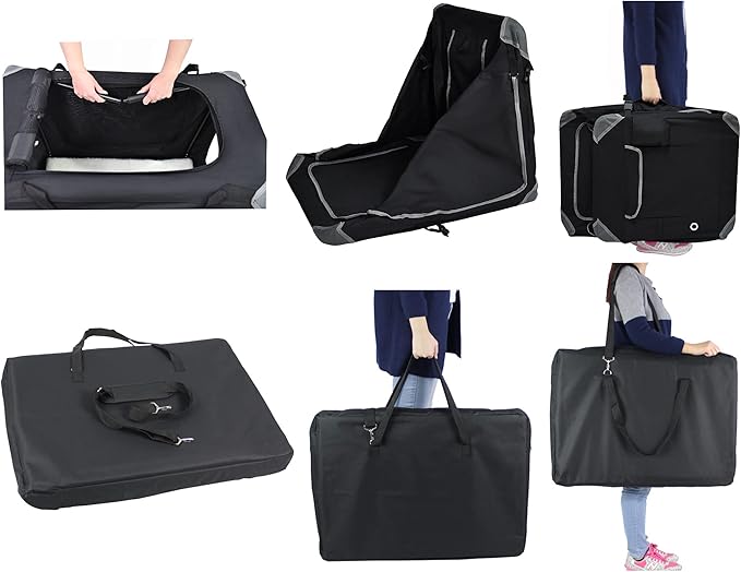 • The crate comes with a free carrying bag and fleece bed. The crate has a handle and hand carrying straps, while the carrying bag features both hand carrying straps and an adjustable padded shoulder strap, providing many carrying options. The crate can be folded down to a height of just 3 inches, making it easy to transport and store
