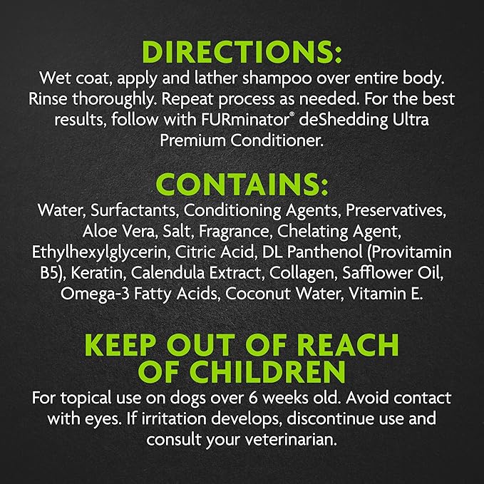 • GROOMING CONFIDENCE: When used with the complete FURminator line of products, this bathing product offers a complete system for deShedding, cleansing and conditioning. For best results, use with FURminator deShedding Ultra Premium Conditioner.