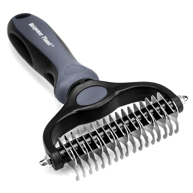 Maxpower Planet Pet Grooming Brush - Double Sided Undercoat Rake for Dogs and Cats, Extra Wide, Reduce Shedding by 95%, Grey