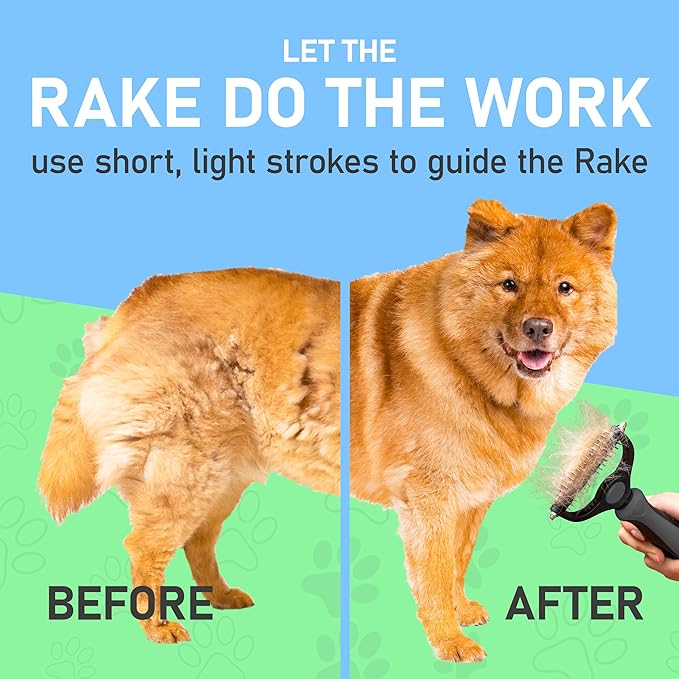 • EFFECTIVE DESHEDDING TOOL: Our dematting and deshedding tool gently removes loose hair and eliminates tangles, knots, dander, and trapped dirt. The perfect cat brush or dog grooming brush solution for pets with thick fur or dense double coats.
