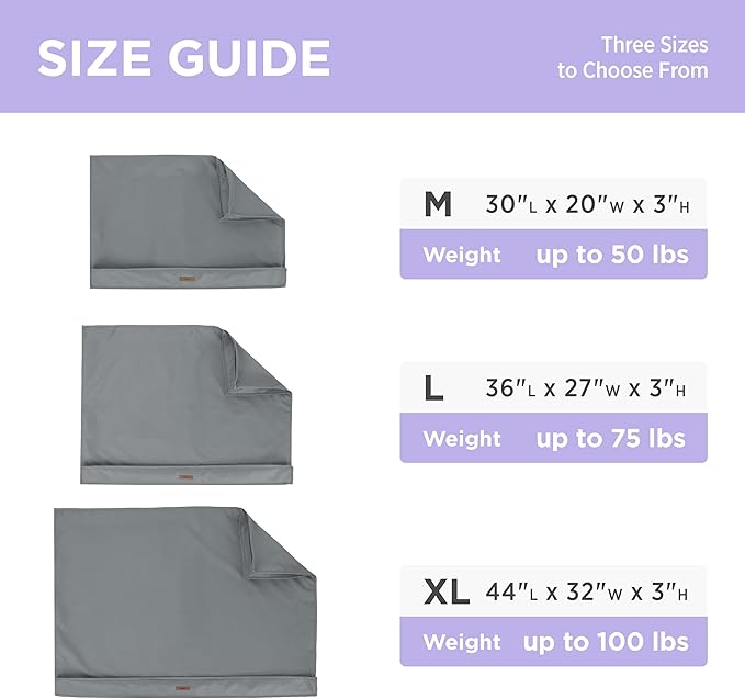 • 30x20x3 Inches Water-Resistant Cover: Made with 100% Oxford fabric, this dog bed cover is water-resistant and can be easily washed up in case.