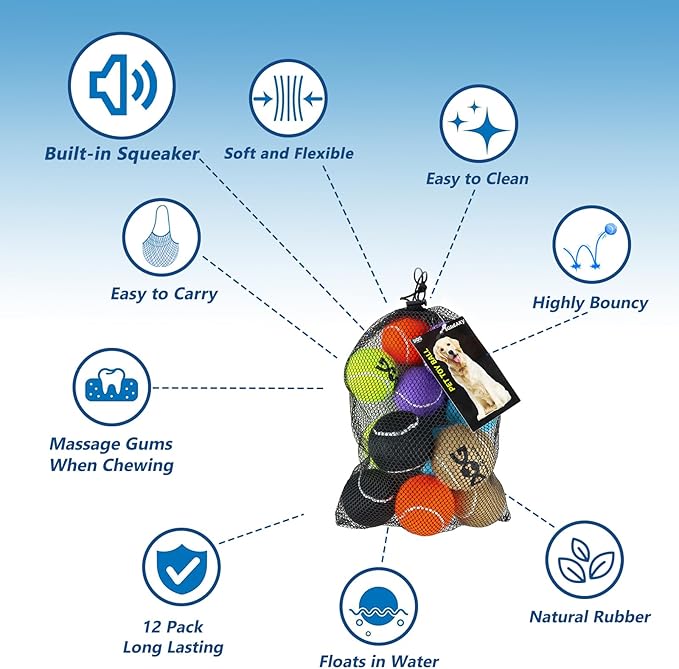 Squeaky Tennis Balls for Dogs Colorful Easy Catching Pet Toy Balls 12 Pack (2.5inch-6colors)