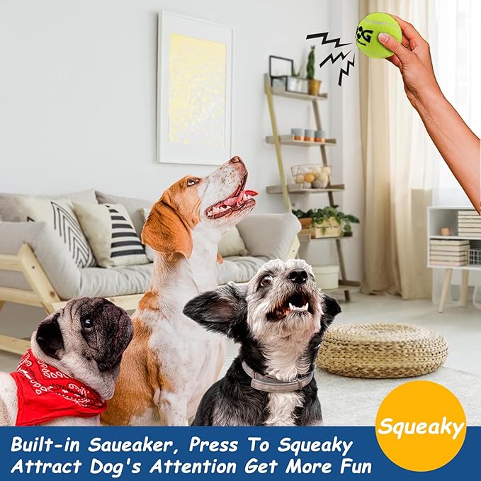 • Perfect for Outdoor and Indoor Play: Whether it's raining or shining, these squeaky dog balls are designed to withstand various weather conditions, making it the ideal toy for play at home, in the park, or even on the beach.