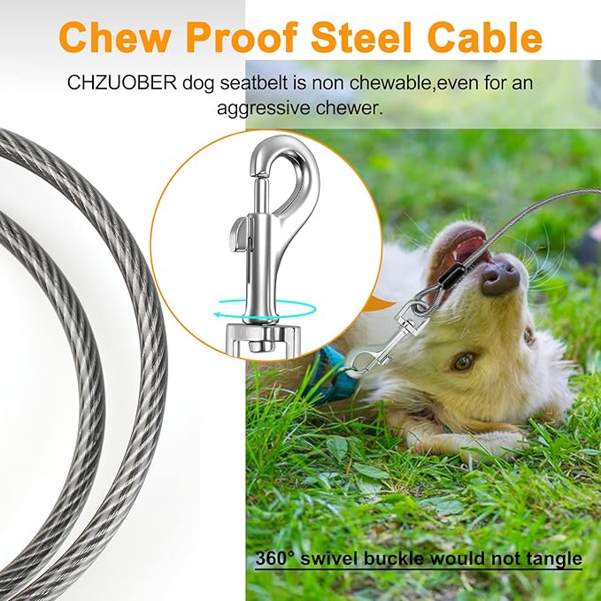 • CHEW PROOF & 2-In-1 DESIGN --- CHZUOBER Seat belt for dogs is designed with headrest restraint and car seat belt clip. This new version dog seat belts is made of steel cable which is extremely durable.Different with the fabric belt, the steel braided cord dog car leash is non chewable ,even for an aggressive chewer.
